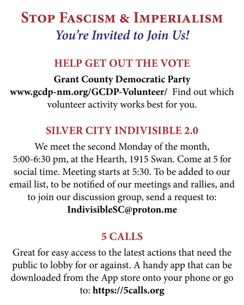 For Zoom invite, email secretary@gcdp-nm.org before 4 pm